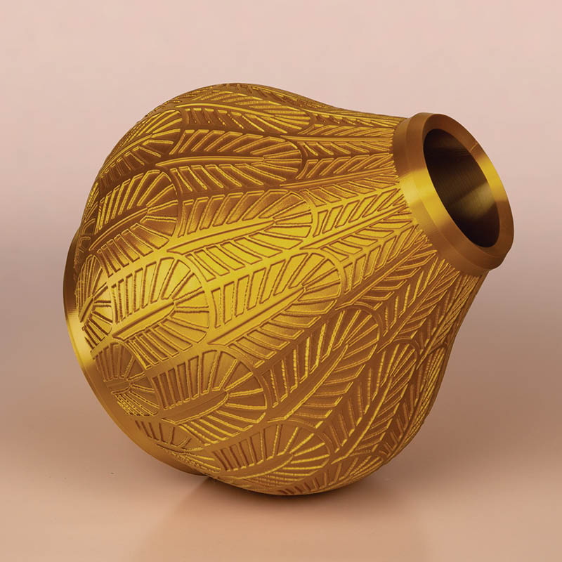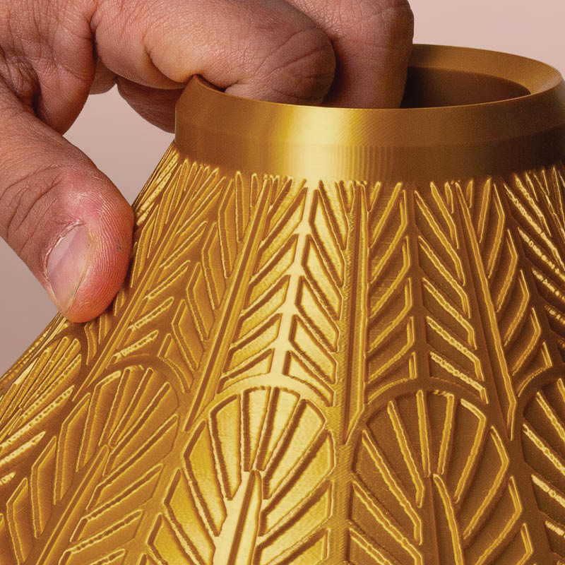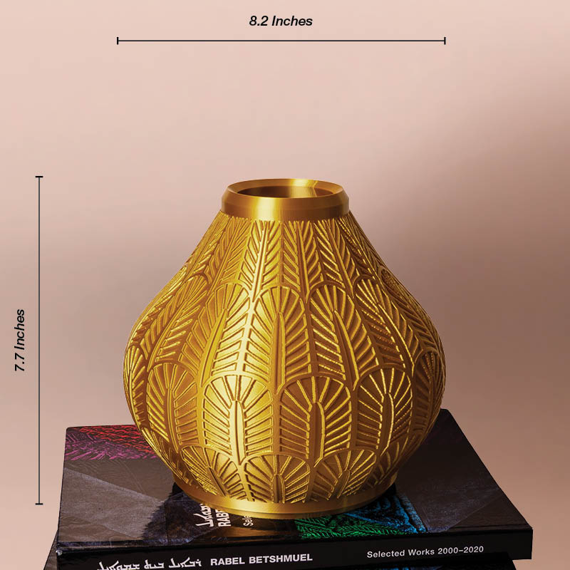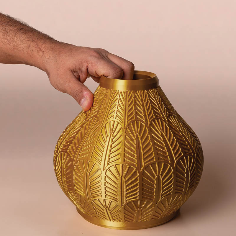 Crafted in 3D printed silk gold PLA, Guardian Vessels reimagines ancient Assyrian symbolism through contemporary form inspired by the feathered wings of the Lamassu. Each vessel suggests quiet guardianship, holding space for strength, memory, and the little things that matter while varying in scale and presence. Made for indoor use with dry objects, these vessels hold personal treasures like heirlooms, trinkets, and dried flowers, blending beauty with lived history.