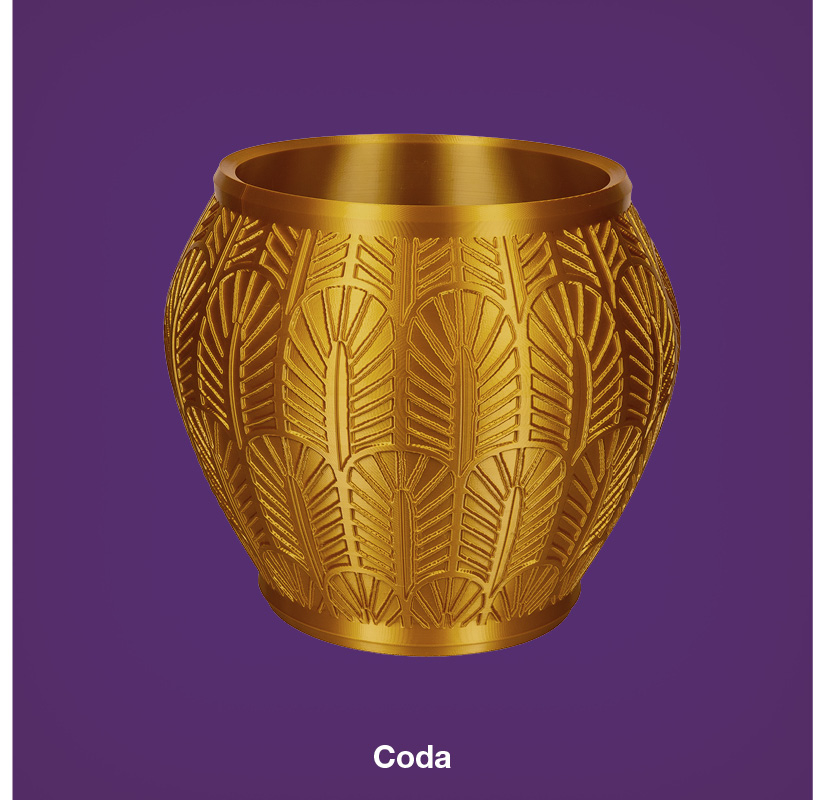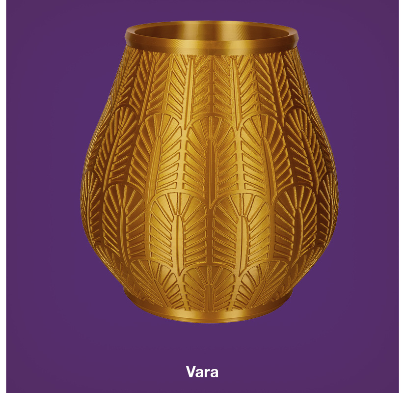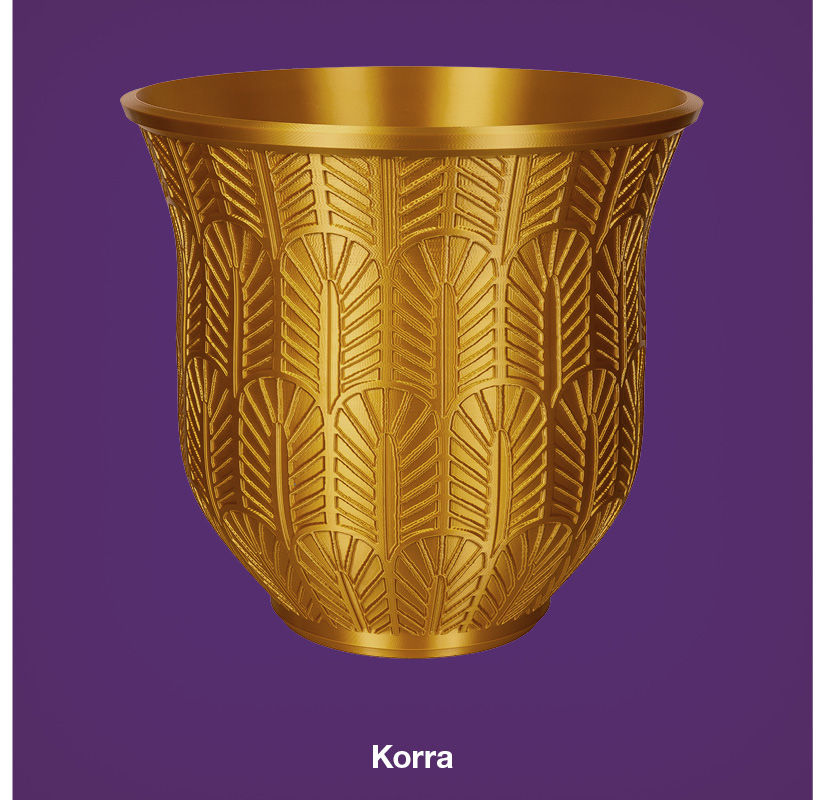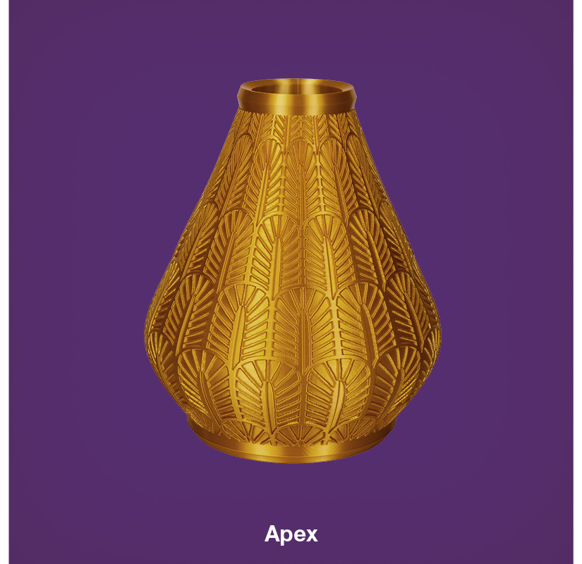 Crafted using 3D printed silk gold PLA, Guardian Vessels is a sculptural series that reimagines ancient Assyrian symbolism through contemporary form. Drawing inspiration from the intricate feathered wings of the Lamassu, mythical beings associated with protection and power, each vessel is wrapped in a seamless feather pattern, functioning as a modern relic shaped by digital precision and creative intention.