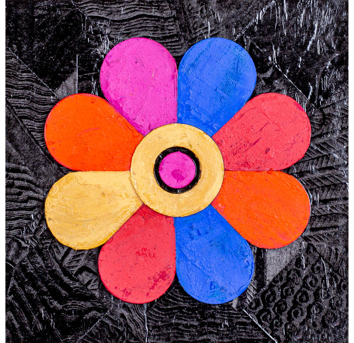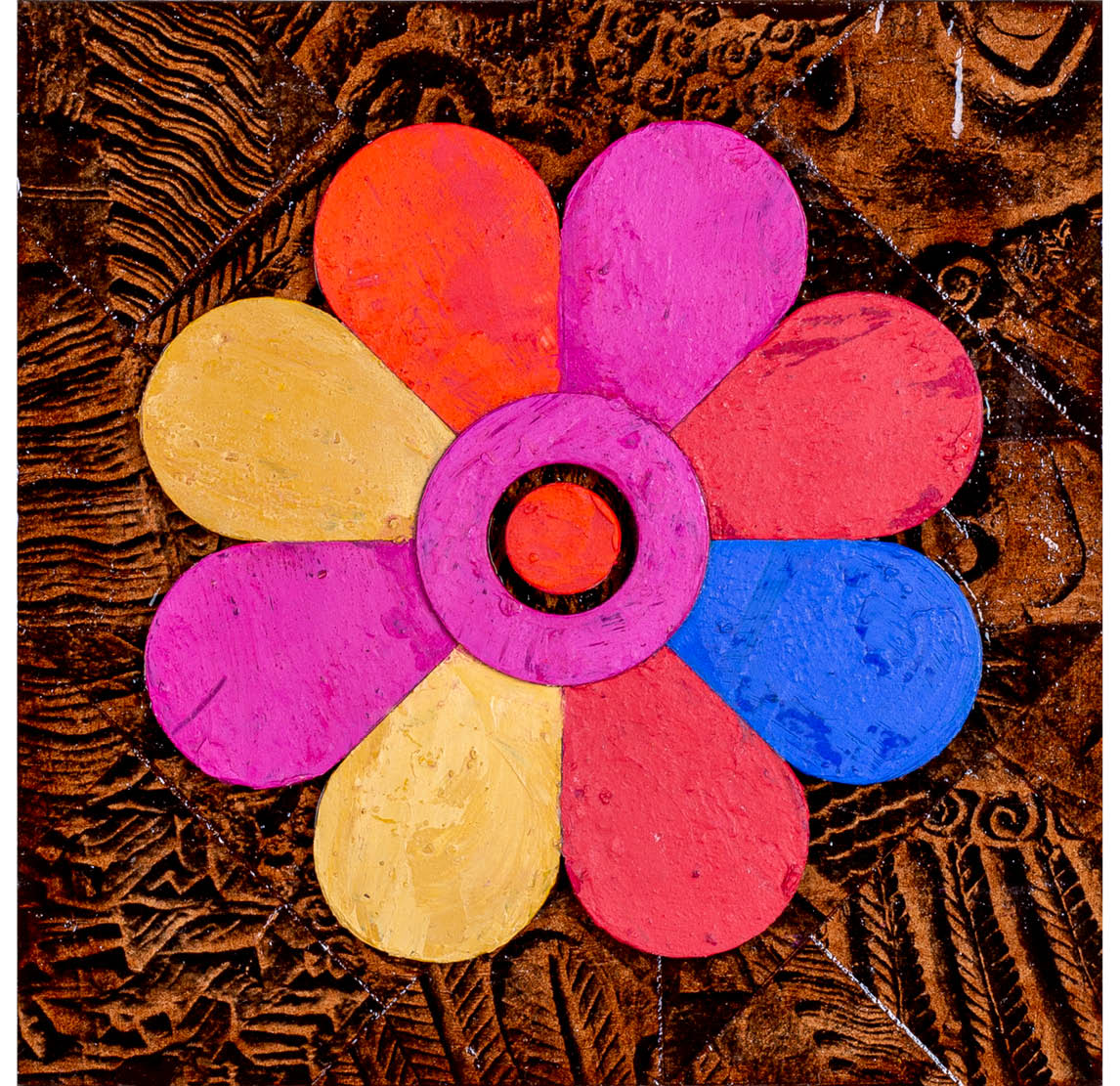 The Rhapsodic Rosettes series consists of 15 mixed media paintings that draw inspiration from the ancient Assyrian rosette. Each painting incorporates 3D printed parts, which offer a contemporary twist to the traditional motifs, resulting in a fresh and modern interpretation of the ancient art form. By utilizing new materials and technology, this series highlights the evolution and preservation of the Assyrian culture. It serves as a bridge between the past and the present, illustrating the enduring relevance of Assyrian art in the modern world. Each piece is adorned with variations of rock-like textures that pay homage to its ancient roots and painted with vibrant colors that combine ancient and contemporary palettes. The background, which symbolizes the transformation of Assyrian history from fully visibility to no visibility, features 10 out of the 15 pieces adorned with a collage of printed, cut, stained, and rearranged ancient Assyrian reliefs that are either half visible or fully visible. This creates a sense of depth and transition, illustrating how Assyrian culture has evolved and transformed over time. It is this unique combination of materials and colors that gives this series of works a timeless quality that is both ancient and new.
